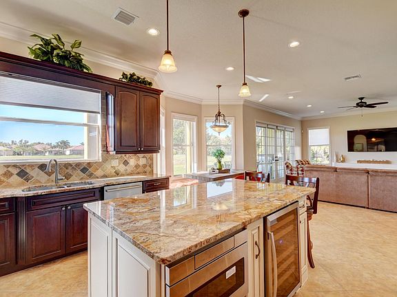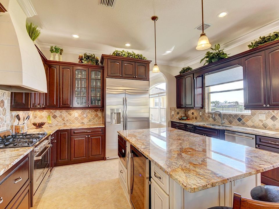 Magnificent Fully Remodeled (2017~$240K) waterfront, 4BR+loft, 3 NEW marble bathrooms, & southern exposure boasting serene sunsets. Two NEW 5T A/C units, NEW gourmet kitchen-custom cherry cabinets, granite counters, stone backsplash, large center island, high-end SS appliances-built-in 48'' refrigerator, wine cooler, & dual fuel oven. Oversized master suite w/ custom walk-in closet system; master bathroom has Kohler shower system. NEW crown molding, hardwood floors, interior & exterior paint. Stunning foyer w/ 21' ceiling & wrought iron staircase. Summer kitchen w/ built-in SS grill on screened in lanai. Large backyard; room for pool. Full hurricane protection. Gated community. Low HOA. Desirable school zone. Close to FL Turnpike.
