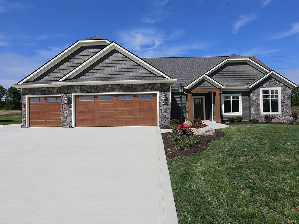 Just completed ranch home by Granite Ridge Builders. The open plan offers a custom kitchen with painted cabinetry, island with breakfast bar, quartz countertops, tile backsplash, stainless steel gas range, dishwasher, microwave and a large pantry. The great room, nook and sunroom are a great open space and have large windows for plenty of natural light. A rear covered veranda is a great place to relax or entertain. The master suite has a private entry, tray ceiling, huge walk-in closet and spacious bathroom with a porcelain tileshower. Other amenities in this home are a half bath, laundry room and 3-car garage plus a utility tub, wider attic pull down stairway and extra 12x9 storage space. This gorgeous home sits on a large lot and also includes a 38 x 24 outbuilding. The outbuilding has an 18x8 overhead door.