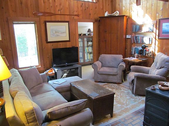 ADIRONDACK STYLE HOME- Blue Mountain Lake -Featuring two separate parcels totaling 1.76 acres, Home accented with wood throughout, Living area has cathedral ceiling, wood stove, skylight, large master suite w/private bath/ jet tub, walk in closet, 3 season sun porch, detached bunk room with stone fireplace and much more