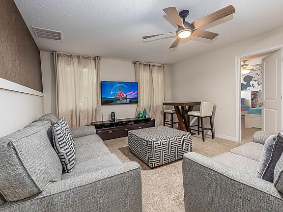 Welcome to Champions Gate Resort, a stunning villa located just 15 minutes from Disney in the heart of Orlando Kissimmee. This beautiful home features six bedrooms and six bathrooms, complete with a private screened pool and spa, a covered lanai, and a BBQ grill. The villa includes two master suites with king-size beds, two themed kids' rooms with twin beds, and two queen bedrooms, all equipped with flat-screen TVs. Enjoy the spacious living areas with large flat-screen TVs and a fully equipped kitchen with stainless steel appliances. Designed for comfort and convenience, this villa offers a large fully equipped kitchen with stainless steel appliances, including a range, microwave, dishwasher, and granite counters. The living room is perfect for relaxation with a flat-screen TV, and the dining area includes a breakfast bar with additional seating. The villa also features a private screened-in pool and spa, a covered lanai with patio furniture, and a pool area with a full bathroom. Guests can enjoy additional amenities such as pool heat for $50.00 per day, which must be purchased for the entire stay and requested at least seven days prior to check-in. The BBQ grill is available for $80, with propane gas refill not included. The home is non-smoking and no pets are allowed, with a violation charge of a minimum of $400.00. Champions Gate Resort is ideally located with easy access to theme parks, dining, and shopping. The resort is surrounded by 36 holes of golf offered through the Omni Hotel, and the Oasis Club, a state-of-the-art clubhouse, is just a couple of blocks away. Enjoy the oversized resort pool with private cabanas, a lazy river, a kids' water park, and more. Florida's renowned beaches, such as Clearwater and Cocoa Beach, are less than an hour and a half drive away. The home is non-smoking and absolutely no pets are allowed. Violation of this term will incur a charge of a minimum of $400.00. Check-in and check-out times are flexible, and the villa is equipped with free Wi-Fi, free cable, and free local calling. A laptop computer is not included.