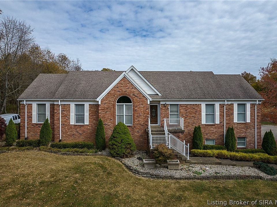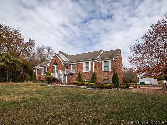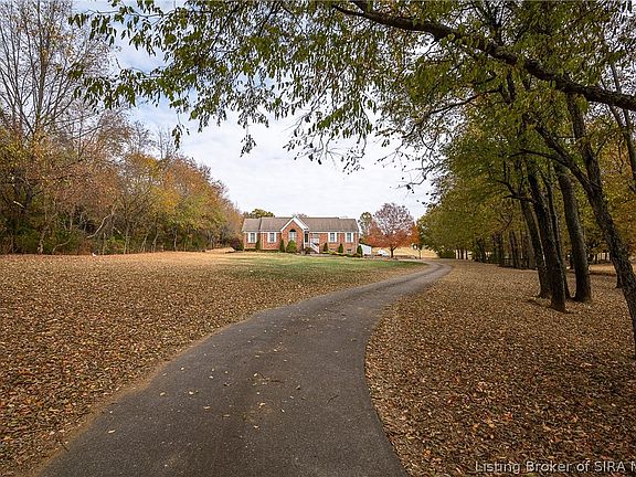 This is truly 1 of a kind!! Where else can you find 4.3 acres less than 5 minutes from Highway 62 with a 5 bedroom all brick house that clears 4,000 finished square feet and a walk out basement? The house is located at the back end of the cul-de-sac and the house itself it tucked back off the road for privacy. The basement was built with family in mind and features a large living area that has a cabinets to serve as a secondary kitchen area as well as 2 bedrooms and a full bathroom! The views are truly stunning from both the front and the back. Approximately 2/3 of the pole barn with electricity)has concrete floor and the remaining on the backside is grave.