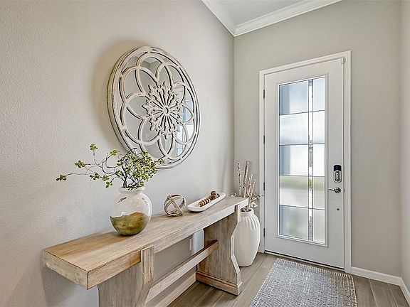 - Ceiling Fan(s), Coffered Ceiling(s), Crown Molding, Eating Space In Kitchen, High Ceilings, In Wall Pest System, Open Floorplan, Primary Bedroom Main Floor, Solid Surface Counters, Solid Wood Cabinets, Split Bedroom, Thermostat, Tray Ceiling(s), Walk-In Closet(s)