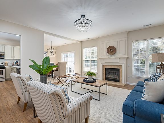 Beautifully Renovated END UNIT w/ high-end upgrades! Freshly painted throughout including trim. Updated w/ new gorgeous laminate wood floors on main level & new carpet upstairs. Eat-in kitchen w/ white quartz countertops, new stainless sink & faucet, chic subway tile backsplash & extended quartz breakfast bar into dining room. Newly painted kitchen cabinets w/ premium 8" stainless pulls. Living room boasts lots of natural light & open floor plan with gas fireplace. New porcelain tile flooring in secondary full bath upstairs. Updated lighting throughout. Backyard patio flanked by privacy fence & open to a grassy common area. 2 car garage. This unit is a stand-out opportunity in Blakeney Preserve & just a stone's throw to shopping & restaurants. Ballantyne area schools are subject to rezoning in 2024.