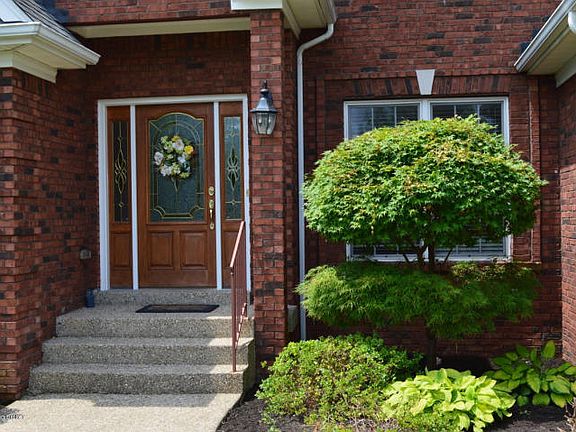 This spectacular home has it all! Located in the award winning Oldham County School District. It's located on the 2nd tee overlooking the fairway of the Glen Oaks golf course, yet provides enough privacy with its natural barrier of a partial treeline and a stocked pond and ducks. A covered porch with ceiling fan overlooks this picturesque setting, which is on a large lot. Beneath the screened-in porch is a washed aggregate patio surrounded by professionally landscaped foliage. Upon entering the 2-story foyer, you'll notice the open floor plan and the abundance of natural light. Extensive hardwood flooring and crown moldings! Formal dining room has chandelier, trey ceiling and is open to the family room.