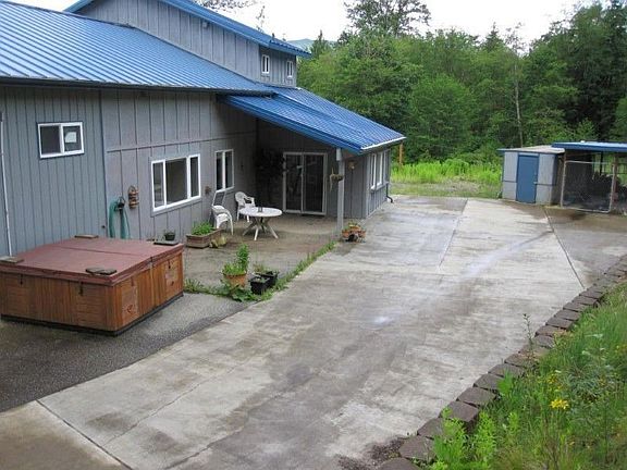 Lovely home sitting up on a hill, surrounded by 10+ acres of stunning privacy. Large outbuilding for your tractor or boat. Spacious home with high ceilings and sunken living room. Large master suite upstairs with great views and 2 bedrooms downstairs. Extra large 2-car garage with office/studio off the garage. Great outdoor living space: covered back patio, fire pit area, shop, dog run. And loads and loads of privacy.