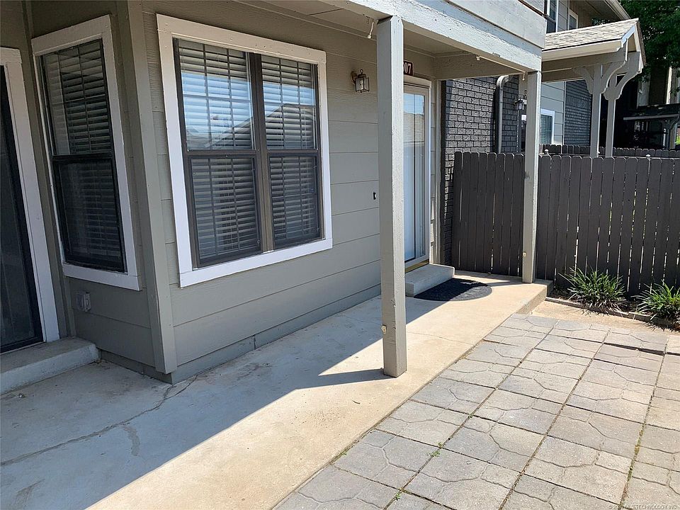 Wonderfully remodeled first floor condo. Granite counter tops, gutters, & covered patio. Vinyl planking in living room. Very clean and move in ready. Great location! Close to the Jenks River Walk and Riverside Park. Assigned covered parking spot right in front of condo! Wired alarm system. Amenities include: club house, pool, cable, trash, water/sewer. Move in ready today!