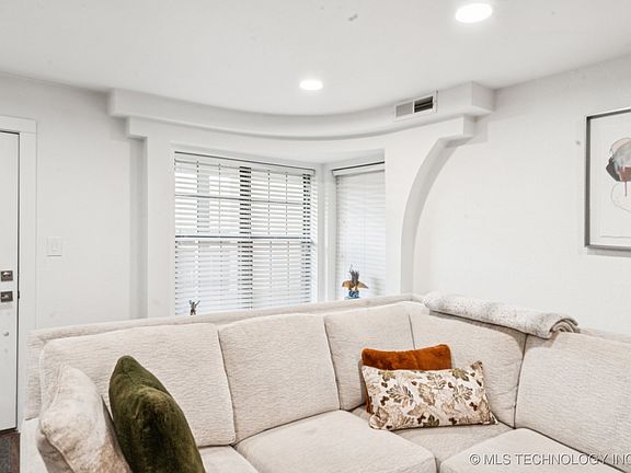 Fully custom-remodeled ground-floor condo with 2 bedrooms, 2 bathrooms, and a private patio. Features insulated walls, updated bathrooms, newer appliances, and a brand-new water heater. Move-in ready and in like-new condition. The inviting living area is centered around a elegant black stone wood-burning fireplace. This bath has new granite countertops and spacious storage. Walk-in closets have custom built-in shelving. Prime location just minutes from the Jenks Riverwalk and Riverside Park. Enjoy the convenience of an assigned covered parking space located directly in front of the unit. Community amenities include a clubhouse, pool and security service. Cable, trash service, and water/sewer, all covered by the HOA. Cozy, charming, and close to everything!