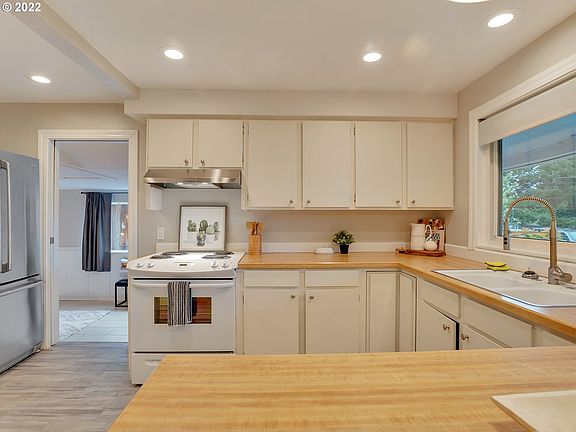 Don't miss out on this beautifully updated, single-level 2-bedroom, 1.5-bath home, featuring a cozy fireplace and original hardwood floors, just minutes from Multnomah Village. The converted garage offers a versatile space that could serve as a home office, family room, or third bedroom. Enjoy the spacious, updated laundry room and host barbecues on the large wooden deck in the expansive, fully fenced yard. The front yard is thoughtfully landscaped, adding charm to the exterior. With a new roof installed in 2017 and a new sewer line in 2016, this home is ready for you to move in!