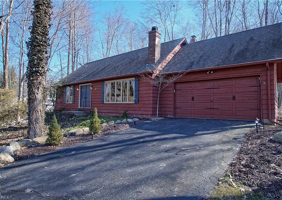 Welcome to this charming and well maintained cabin style Cape Cod located in Sagamore Hills on spacious .75 of an acre wooded property. Conveniently located near I-271, I-480, as well as shopping/dining and lots of other local attractions. This home features over 2,064 sq. ft. of living space including a finished basement basement with plenty of built-in shelving, storage space, and room for entertainment, 3 bedrooms, 2 full baths, 2-car garage, an open floor plan with cathedral ceilings, upgraded eat-in kitchen with plenty of counter/cabinet space, a spacious family room with hardwood flooring and a floor to ceiling stone fireplace. On exterior of the home you will find a stone patio, fire-pit, an out building/work shop with a porch, basketball (1/2) court, and lots of privacy. In recent years the owner has replaced the hot water tank, painted interior, replaced basement flooring and completed several other smaller projects throughout. The owner is including all kitchen appliances and a 1-year home warranty through America's Preferred. This home is truly unique and is a must see...