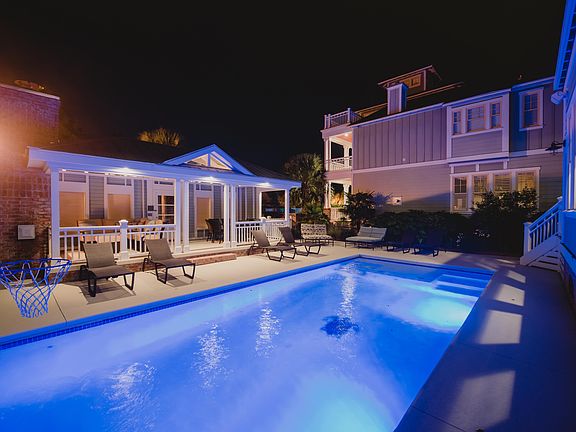 Unrivaled luxury home perfectly positioned in one of the area's most desirable coastal communities, Seagrove at Carolina Beach. Two custom built homes on separate homesites combine around a secluded courtyard with heated salt water pool and cabana to offer upscale privacy rarely available in seaside communities. The primary residence, built in 2006, is 3,145 square feet with three bedrooms, two full baths and two half baths. Meticulous attention to detail and custom amenities in both homes. Features include: coffered ceilings, granite, quartz, cultured marble, & ice stone countertops, handcrafted tile, hardwood floors, stainless appliances, gas fireplace in the living room & master bedroom, wainscoting throughout, 8 foot doors, central vac, surround sound system throughout, exposed rafter