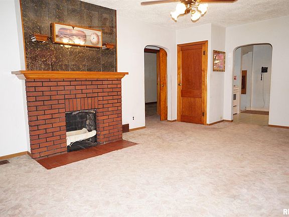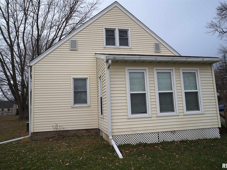 Solid 1.5 story home with plenty of living space! Hardwood floors under carpeting on the main level. Spacious living room w/attractive wood burning brick fireplace & sunny 3 season porch. Basement is finished w/a rec room, shower and toilet for xtra living space. This home has an xtra lot South of the house w/its own parcel number plus, a 24x24 oversize two car garage (15 years). Updated windows, roof is 10 years. Nice house! Please note: The xtra lot is South of home. Ask your agent for plat