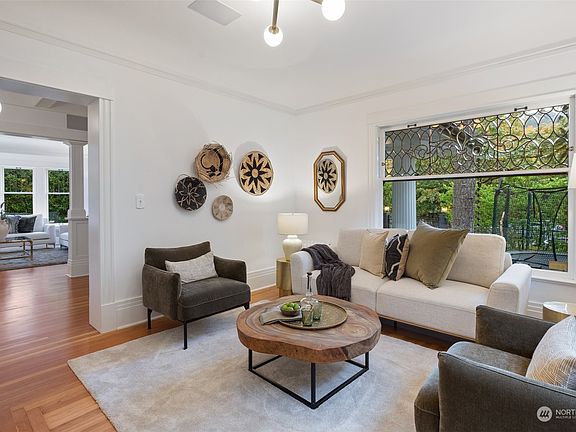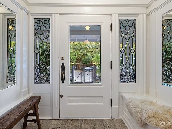 Classic Foursquare prominently sited on a large SW facing corner lot promises ample natural light. Original features combine with modern sensibility, entire home has been extensively remodeled. Well appointed kitchen opens to the private backyard, complete with house audio system, hot tub, multiple decks, lawn area & sports court. A delightful space to entertain, play & relax. Great room on lower level with second kitchen & craft room. Two primary suites, one situated up top with a fireplace, AC, luxury bath & custom closet for your collections. Apartment above the two car garage. If you cherish leaded glass windows but appreciate the luxury of heated bathroom tile & laundry on multiple levels, this Grand Dame near Volunteer Park has it all