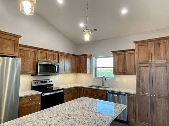 Check out this beautiful new home! 3 bedroom, 2 bath newly constructed home in new subdivision. The master bedroom features a walk-in closet and attached bathroom with a 48" walk-in-shower and double vanity. The main bath has a double vanity with a tub/shower. The kitchen has granite counters with soft close drawers, a pantry, stainless appliances and under cabinet lighting. This home was built with 9 foot ceilings and 2x6 walls, LP Smart siding - Diamond coat and 30 year shingles. Additional features include a 50 gallon water heater, water softener, underground sprinklers, yard well, back patio, an established yard with a rock bed outlining the house.