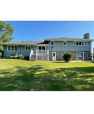 In Central ND sits the welcoming small town of Maddock. A home has been put on the market for sale here. This lovely home has 3572 sq. ft. and sits on ½ acre, which has been professionally landscaped with many mature trees. If you’re looking for a view this home is for you, it has both country and city views, and sits in a quiet neighborhood. The home features 4 bedrooms, 2.5 bathrooms, and an attached 2 car garage, it also has a detached 2 car garage with a large workshop, making this home a desired property. The eat in kitchen, which looks out to the beautiful backyard has custom cabinets with granite countertops and newer flooring. All major appliances are included. The living room features a built in TV cabinet and has a large bay window. The spacious dining room is ready for your family gatherings. The family room features a wood burning fireplace for those chilly ND winters. The basement is partially finished and includes a pool table and a sauna for a perfect way to relax. This home has central air and an electric/propane heat pump. The new large water heater and water softener are an added bonus. The steel siding with seamless gutters and leaf guard equal easy maintenance. Your eyes will be drawn to the gorgeous stonework with the steel siding. The maintenance free deck joins a concrete patio, which is already wired for a hot tub. There are no special assessments owed on this property. To view the home contact 701-739-9429.
