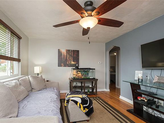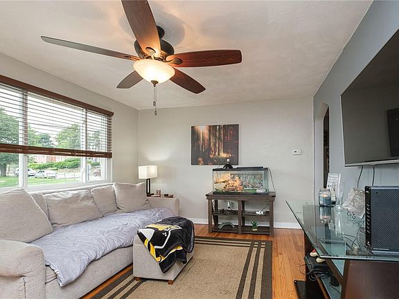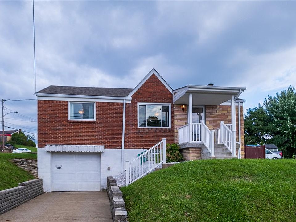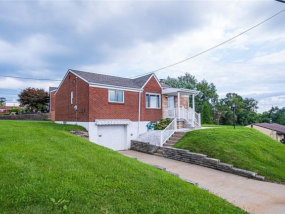 This beautifully built brick ranch sits on a huge corner lot in West Mifflin. The open concept main living area welcomes guests with massive picture windows & hardwood flooring. The eat-in kitchen boasts updated stone tile flooring, mahogany cabinetry, quartz counters, & stainless steel appliances. Enjoy your morning coffee & a soothing bird song from the patio directly off the kitchen. The beautifully refinished oak flooring carries through the 3 ample bedrooms. With 2 fully updated full bathrooms, there is no need to be concerned about fighting for space. The massive finished basement offers another entertaining space with no shortage of storage between the laundry room & integral garage. Rest easy with the newer HVAC, newer windows, & a seller provided home warranty! Welcome home!