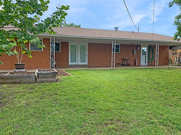 This ranch style brick home includes a beautiful two-story barn and is situated on approximately .75 acres. Not only is this a great property but it is also located in a great neighborhood. There is an abundance of shade trees and you can enjoy the privacy from the canyon and trees located behind the property. This house consists of 1,350 sq. ft. of living space with 3 bedrooms and 1.5 bathrooms. There is a one car attached garage and a basement underneath for a storm room. Updates include a newer roof, windows, CH/A, water heater and new flooring in the living room. Appliances included are the refrigerator, oven, stovetop, and dishwasher. The French doors in the dining room were new in 2021 which lead out to the large patio area and shaded back yard. The 22x25 two-story barn has a total of 1100 Sq. Ft. It has electricity and is well insulated on the main level. It is also wired for a 220v service. One of the best parts about the property is the amount of land that comes with it. The property sits on 2 full lots and comes with an additional tract of land to the South of the property. The property also goes beyond the back yard's fence line to the East. Altogether, it sits on 32,198 sq. ft. of land or .74 acres. This house is a must-see! Not only is it located in a family friendly neighborhood, but it is also conveniently located near the high school, city pool, and park!
