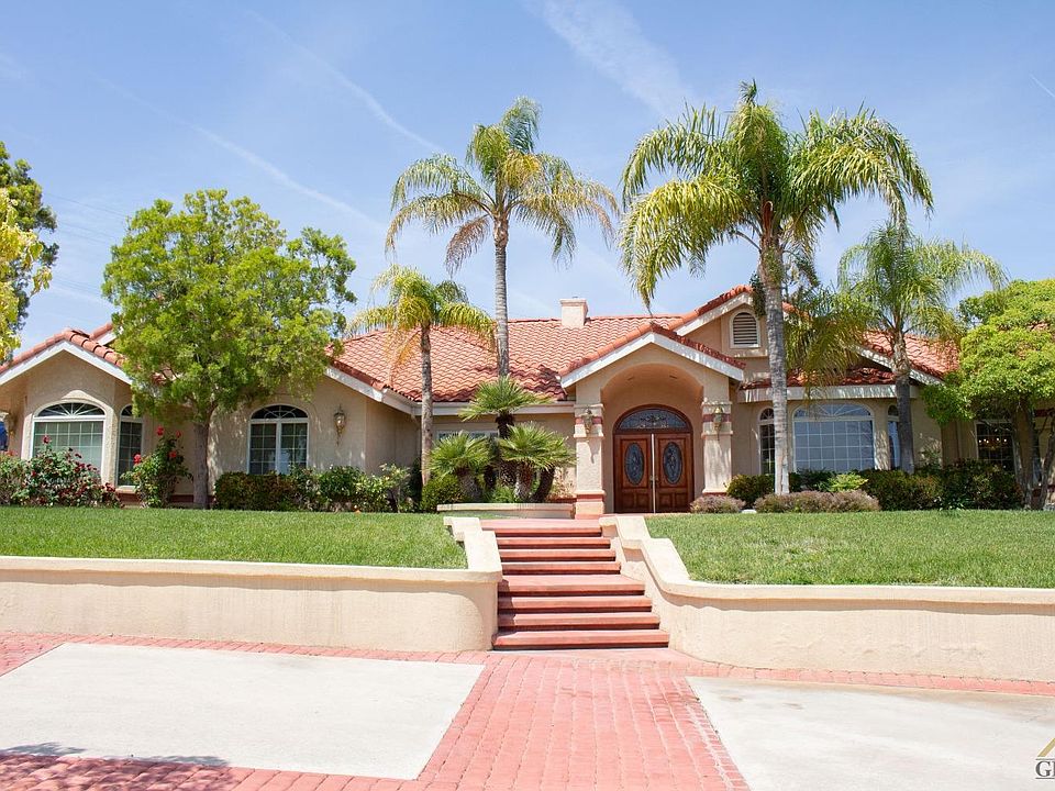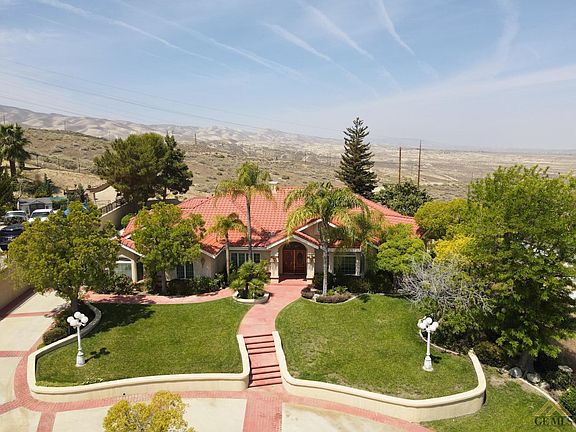 Enjoy the city lights and spectacular views of the valley with this beautiful home on the hill with a POOL. OWNED SOLAR, 14.22 kw system (per seller) on ground for easy cleaning. This spacious home in Taft offers 3 bedrooms, 3 baths, an office and a 3 car garage. This amazing property features a split wing, vaulted ceilings, formal living room with formal dining area, a huge great room with a fireplace and an office with built in cabinetry and double doors. This lovely kitchen has custom cabinets, recessed lighting, pantry and wet bar. There is an indoor laundry room with plenty of cabinet space. The large master bedroom offers a large master bathroom with double sinks, separate tub plus shower and huge walk in closet. You will love this backyard with all the views, covered patio, nice landscaping and a sparking pool perfect for those hot summer days.