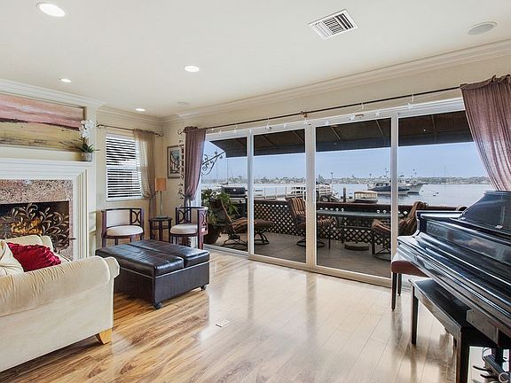 SPECTACULAR LOCATION ON BALBOA ISLAND'S SOUTH BAY WATERFRONT! The perfect backdrop, ideal beachfront setting captures a dramatic blend of pure ocean breezes and great waterfront views. This beautiful home features 2 bedrooms + Office on 2,175 sqft of spacious living. Granite countertops and stainless steel appliances accent the spacious kitchen. Handsome wood flooring invite you into the expansive Living Room with cozy fireplace and Den area. Open up the large sliding doors to the lower bay front patio and take in the ocean air! Main floor bedroom features an en-suite bathroom, ceiling fan and a large walk-in closet. Make your way upstairs to the master bedroom featuring a large walk-in closet and a large private outdoor deck. The stunning master bathroom has a jetted tub, large walk-in tiled steam shower and dual sinks. Large Office has ample built-ins and its own private balcony with ocean/marina views, hmmm it may make it hard to get work done! Take a stroll on the boardwalk to the beach area.