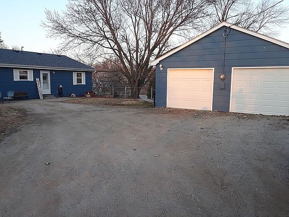 3 bedroom, 1 bath home. 4 car garage with new garage doors and electrical. Lots of kitchen cabinets, new windows, new roof, and guttering. It has a very nice covered porch, and back concrete patio.