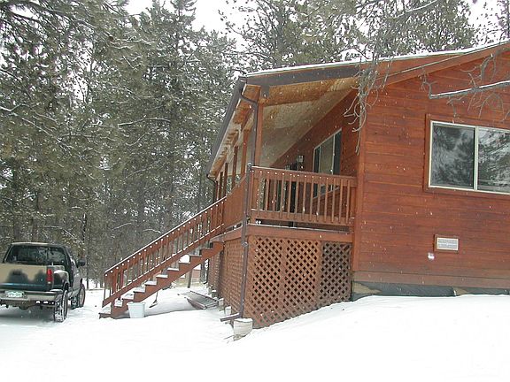 Do not miss this gorgeous, secluded home backing to a large, wooded ranch! Huge covered deck in front of home, sizable deck around back as well! Inside you are greeted by exposed wood and an abundance of natural light. Functional kitchen finished with necessary appliances and beautiful wood cabinetry! A fireplace in the great room adds even more character and helps keep the interior warm. 2 bedrooms share a full bathroom. Dog run/chicken coop around back. Do not miss this private home, book your showing quickly!