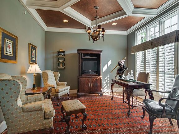 Venetian abode. Gracious entry. Dining room w/butlers pantry. Study w/copper coffered ceiling. Den w/limestone FP mantel open to chef's kitchen & breakfast rm. Master w/his & hers water & walk in closets. Walled and landscaped courtyard. Rec rm.