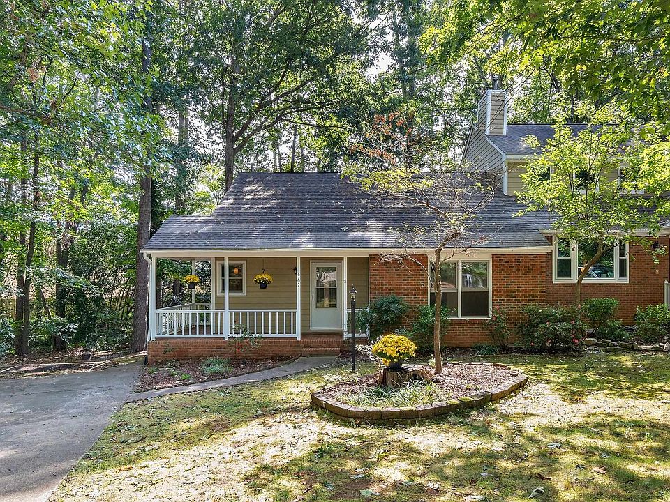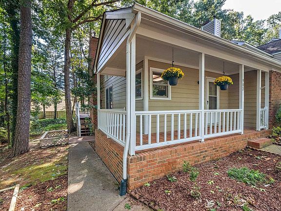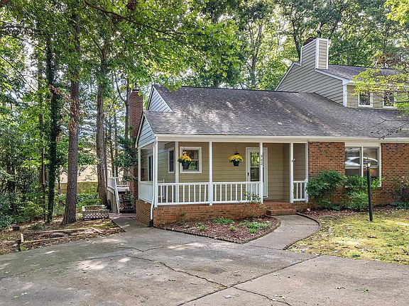 Rare gem alert! Impeccable ranch end-unit townhome in coveted heart of N Raleigh. Boasting 2 spacious bedrooms, including a master with a stunning vaulted ceiling & updated bath, this home exudes both elegance and comfort. The open floor plan welcomes you with vaulted ceilings in both the living area and the master bedroom, creating an airy, inviting atmosphere. A charming masonry fireplace with gas logs and built-ins takes center stage in the living area, offering warmth and character to the space. Prepare to be captivated by the family room, which stretches along the entire back of the home and is adorned with a magnificent wall of windows. This space not only floods the home with natural light but also provides a panoramic view of the outdoors, making it the ideal spot for relaxation, entertainment, or simply soaking in the beauty of your surroundings. Enjoy the ample storage, a generous deck, fresh interior paint job, new porch doors, a sleek refrigerator, and refreshed landscaping that adds modern touches. Don't miss your chance to own this exceptional home in a prime location!