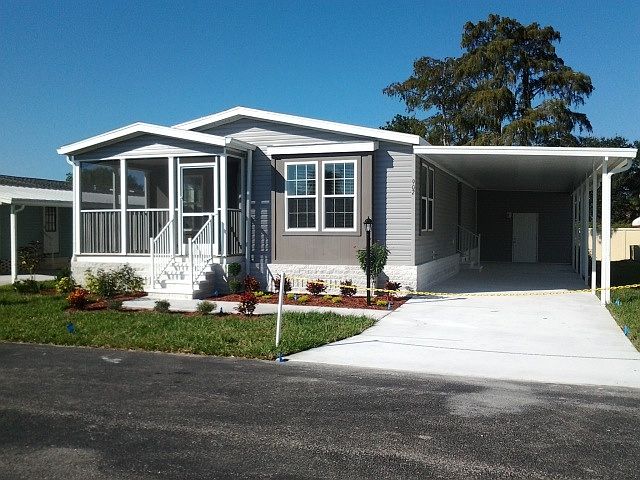 BRAND NEW 2016 Skyline - 2016 Skyline Eagle. Spacious open floor plan home with 2 Bed / 2 Bath and a den. Crown molding throughout. Spacious kitchen with all cherry cabinetry. Laundry room. Large screened front porch. Very nice landscape with sprinkler system installed. Large carport as well with site built storage shed. Last NEW construction home available in community.