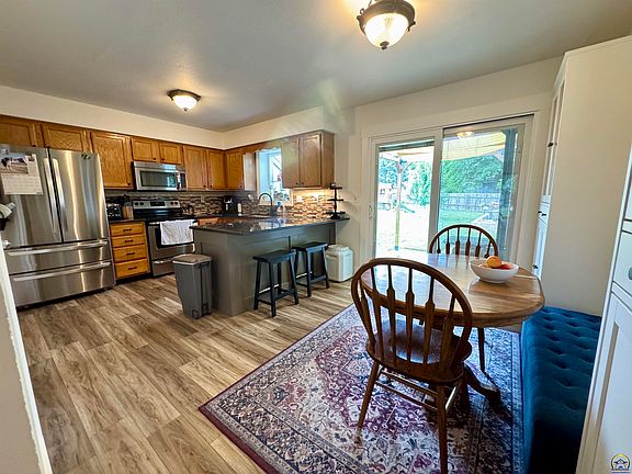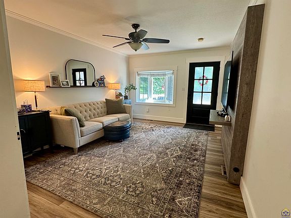 Discover this adorable home in Eudora! Walk to Eudora early learning center and park just a block away! Newer Alenco Windows, extra wide drive way, extensive landscaping w/amazing outdoor back yard retreat covered back patio and a privacy fence! 5 bedrooms (3 up, 2 down, 1 non-conforming in basement), 2 full baths, large laundry room, new flooring on main floor in 2024, newly painted throughout, granite counters with super deep sink! New heat and ac in 2021. Perfect opportunity for small town living in this perfect home! Schedule your showing today!