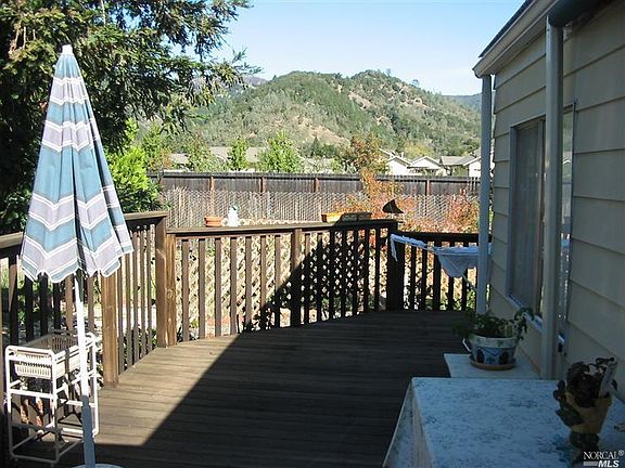 On the perimeter in Chateau Calistoga with mountain views from the porch and attached deck. Living, dining & family rooms, spacious kitchen with a gas cooktop & built-in oven. Two bedrooms, two baths, separate laundry room and carport. Park offers a community clubhouse, pool & spa located close to downtown Calistoga.