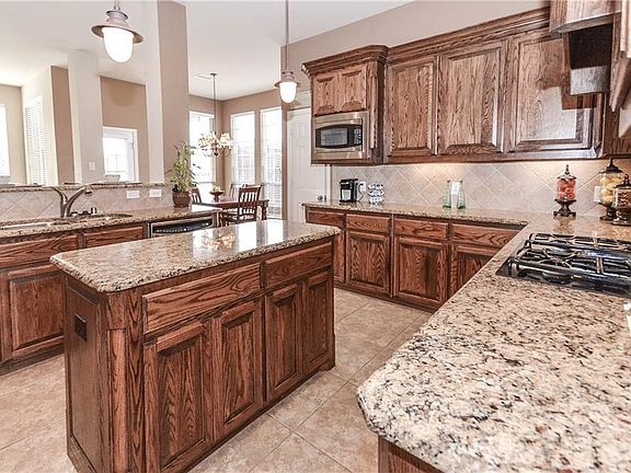Splendid Highland Home 5 BR, 4 BA home is on a huge corner lot! Beautiful hardwood floors extend from the 2-story foyer into the formal dining & family rm. Family room is open, corner stone fireplace with gas & built-in cabinets. The island kit is a chef's delight w-granite counters, bfrkfast bar, SS appli, dbl ovens, gas cktop, micro & walk-in pantry. Downstairs guest BR & bath plus a lrg master & bath w-his-her vanities-gard jet tub-shower & WIC. Upstairs gamerm, media, 3 BR's & 2 baths. Wired for sur sound-speakers included! Plantation shutters. Relax on a cov patio & enjoy a lrg backyard w-BOB fence. Security & sprinkler sys. Close to pond w-fountain, gazebo, walk-jog trail, & Firewheel golf course.