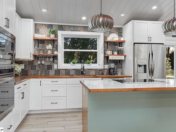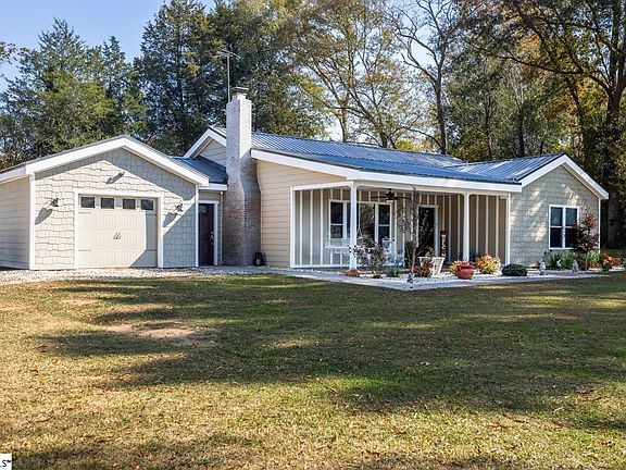 You will LOVE coming home to this completely remodeled oasis where you can spend more time doing what you love! If low maintenance living is what you're looking for then look no further-- the Hardie board exterior is beautiful and durable and will stay that way for years to come. The home also features a metal roof, vinyl windows, zoned heating and cooling with efficient ductless mini-splits, and new insulation to keep everything comfortable. Stepping inside, you'll notice the open and airy feel of the living area with vaulted ceilings, shiplap walls, ceramic tile flooring throughout, and ventless gas log fireplace. The pristine, modern kitchen is a chef's dream, featuring a huge island with storage and a cooktop with downdraft range hood. The new cabinets and drawers are soft close, and the large stainless steel sink includes a disposal for easy cleanup. The modern touches include under cabinet lighting, open shelves, and tile backsplash. All of the stainless steel Frigidaire Gallery appliances will convey. You'll find plenty of storage between all of the cabinetry and the pantry tucked away behind barn doors. The two bedrooms are each like their own private suite. The master bedroom has a beautiful vaulted ceiling with recessed lighting, making it feel very calm and serene. It has a nice walk in closet with built-in shelving. The en suite feels like your very own spa-- it's fully tiled and features a beautiful floating mahogany vanity with engineered marble countertop and double sinks. The luxurious wet bath also has a modern shower panel with a waterfall shower head, body jets, and handheld sprayers. The second bedroom also features an en suite with a beautiful vanity with engineered marble countertop and gold Moen faucets for the sink, bathtub, and shower. On the other side of the living area you'll find the large laundry room with lots of extra storage. The Maytag washer and dryer will convey. Through the laundry you'll head into the garage with its tile floor and center drain. It's a drive through garage with two electric doors, making life convenient and easy! This room has the potential to become a third bedroom if desired. Everything has been updated from top to bottom, from the electrical to the plumbing to all the beautiful finishes. The owners have put so much attention to detail into this home, and the quality shows. There are extras that you only find when someone remodels to live in the home, including a tankless water heater, dimmable lights, Levolor window shades, water purifier, accent lighting, and outlets in the living room floor for lamps. It's these thoughtful touches that will make you and your guests say WOW. The home also features wide doorways, low thresholds, and pocket doors for easy accessibility. The beautifully landscaped yard is spacious, and you will enjoy pleasant Southern evenings under the covered patio with pergola. There's also a charming out building with electric and a loft area for storage-- come create your own man cave, she shed, or play house for the kids! The backyard has its own RV hookup with 50 amp service. You'll love how tucked away and private the yard feels, but you'll also appreciate how close you are to everything Laurens has to offer with its shops and restaurants. The Laurens Square is only 3 minutes away, ZF Transmissions is 15 minutes away, and Simpsonville is less than 25 minutes away. And the best part? NO HOA! Come see everything this completely remodeled home has to offer in growing Laurens, South Carolina! Schedule your showing today!