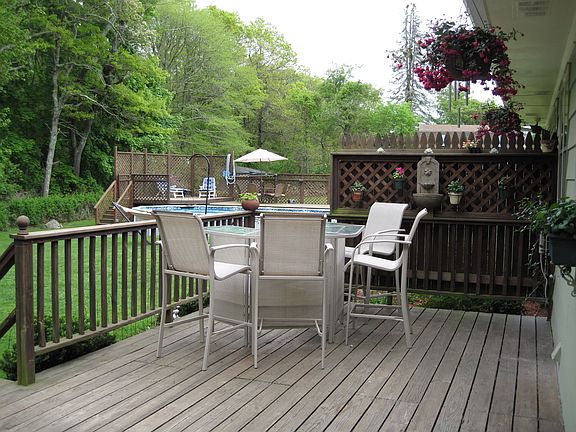 Very well maintained, bright, 3 BR ranch with updates. Master BR with cathedral ceilings, skylight, walk-in closet and working fireplace. Updated bathroom w/ whirlpool tub. Eat-in-kitchen w/ ss appliances. Large step down family room with bay window. Very spacious foyer/mudroom with sliders out to deck. Over 1/2 acre private, fenced, very nicely landscaped yard with above ground pool with deck. Out building with electricity. Storage shed.