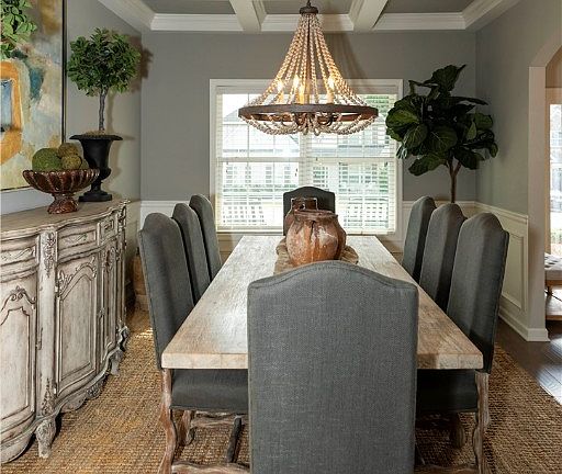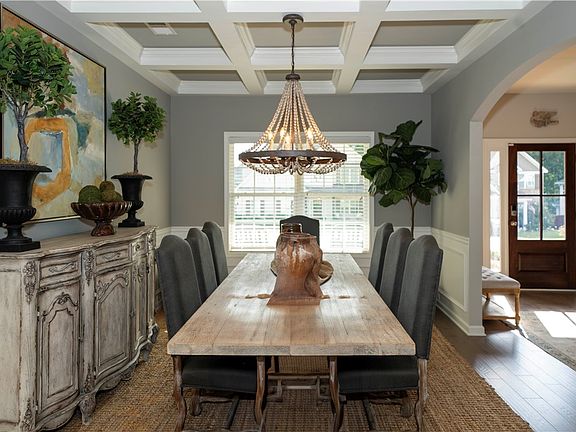 - Description: Coffered ceiling, wainscoting and chandelier,Flooring: Wood
