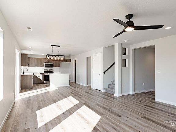 This new home located in beautiful Mountain Home, Idaho has all the comforts you need & more! Enter inside the Tatom 2054 and feel immediately welcomed. As you move toward the back of the home, you find a well-appointed kitchen complete with a generous pantry and a kitchen island. The back yard feels like an extension of the home when it's easy to access right from the dining room. A formal living room at the front of the home and the main living room in the rear provide multiple living spaces to host guests in or relax. The upper level primary suite is accompanied by the laundry room and three additional bedrooms. The fourth bedroom offers a walk-in closet for extra clothes or storage. Photos are similar. All selections are subject to change without notice, please call to verify.