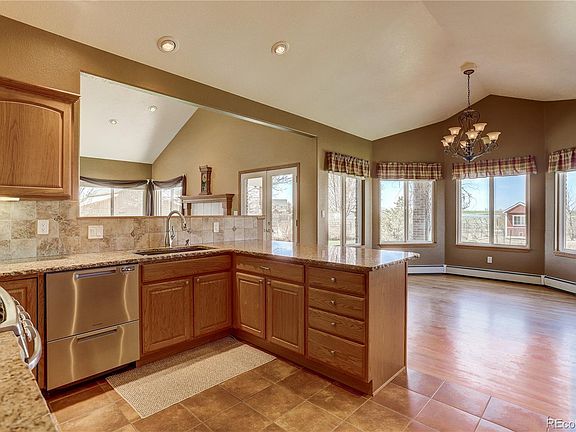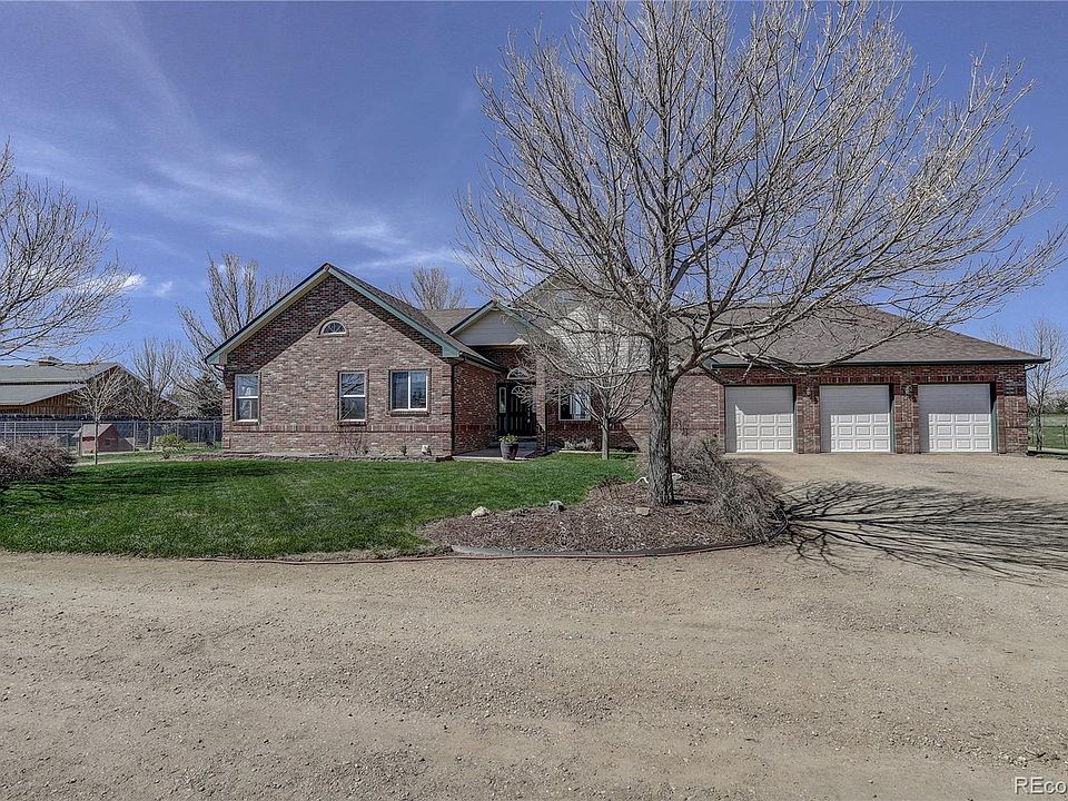 Exceptional Berthoud horse property on 5.32 acres, with stunning mountain views and no HOA! Enjoy this custom-built home's open floor plan, with 9' ceilings, eat-in kitchen, a finished basement and lots of storage space. Abundant natural light throughout. Kitchen has granite counters and the stainless steel appliances include a gas range and Fisher and Paykel drawer style dishwasher. Gas fireplace, ample closet storage with custom shelving, a laundry room with cabinetry and space to fold, plus customer window treatments - this home has a lot to offer! A fenced pasture, horse stalls and corral, dog runs/kennel are ready for all of your animals, as well as the fully fenced chicken coop.