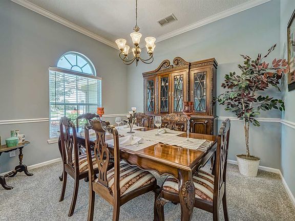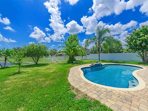Welcome home to this exceptional four-bedroom, three bath pool home featuring stunning upgrades and a large, private backyard with water views. An inviting foyer opens to elegant formal living and dining areas. The well-appointed gourmet kitchen boasts granite countertops, 42" cabinets, upgraded appliances, ceramic tile floors, pantry, and raised snack bar opening to the family room. The open and spacious kitchen seamlessly meshes with the casual dining space and family room. The expansive family room offers a custom wood burning fireplace, wood floors, and has direct access to the covered lanai and pool making it ideal for entertaining. Retire for the day to the alluring master suite with large windows overlooking the pool, a large walk-in closet, and a luxurious master bath with dual vanity, Roman tub, walk-in tiled shower, and private water closet. This home is further enhanced by three additional bedrooms, two conveniently located guest baths, separate laundry room, and a two-car garage. Additional interior upgrades include new interior paint throughout, new carpet in all the bedrooms, crown molding, upgraded light fixtures, recessed lighting, pendant lighting, upgraded hardware, ceiling fans, custom blinds, glass front entry doors, security system, and a water softener. The secluded outdoor paradise is outstanding offering a spacious covered and screened lanai, sparkling pool, and an extended paver patio overlooking the water. Additional exterior upgrades include flood lights, fully fenced backyard, irrigation system, termite bond, separate irrigation meter, paver pool deck and walkway, and distinctly designed landscape with beautiful palm trees. Heritage Park is an exciting community to live in with conveniently located amenities including clubhouse, pool, fitness center, tennis courts, athletic fields, and jogging trails. Call today for your private tour!