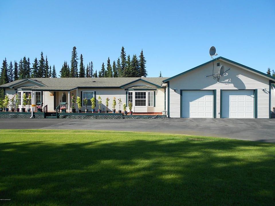 Price Reduced to under appraised value!! This home is the perfect place for a family or retiree. Absolutely gorgeous landscaping, in ground sprinkler, asphalt drive, greenhouse and and an extra two car detached garage makes this a true Alaskan 2.61 acre paradise. Large back deck and pergola overlook gorgeous trees, flowers and lawn. Minutes away from the Kenai River!! New Septic installed!