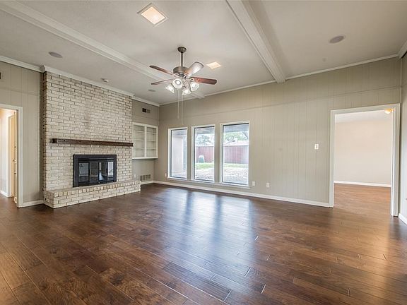 Wonderful spacious one story, 3 bedroom and 2 bath home in the highly sought after College Park North Subdivision in RISD. This home has two large living areas with huge windows with views into the private back yard with 8ft board on board fence. Engineered wood floors throughout most of the home and granite counter tops with stainless steel appliances in the kitchen. Main living area has floor to ceiling brick gas starting fireplace and wet bar with easy flow into formal living room and kitchen. Most of the exterior windows are brand new. Must see!