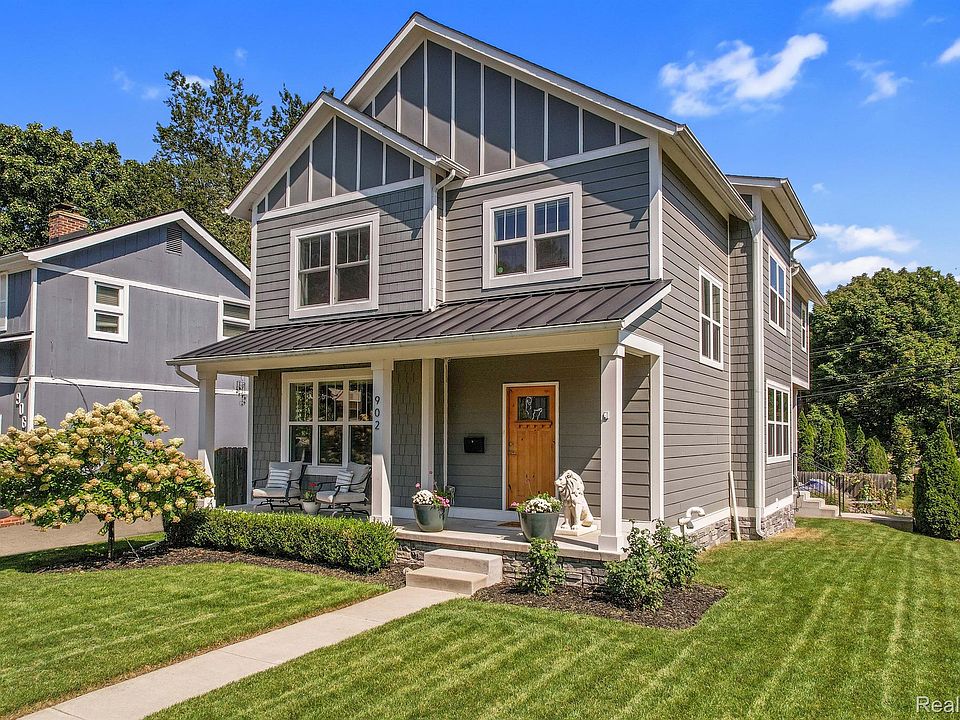 Fabulous, newer Royal Oak home on manicured corner lot close to Fernwood Park and Meininger Park and just minutes from all that downtown Royal Oak has to offer. This thoughtfully designed home offers the perfect space for everyday living and entertaining. With beautiful wood flooring and an abundance of natural light throughout, the home is welcoming and inviting from the moment you enter. Open floor plan where the family room with gas fireplace and built-in shelving flows seamlessly to both the stunning kitchen and dining space. Gorgeous Kitchen with stainless-steel appliances, Quartz island with seating. Office with double glass doors for privacy, a half-bath and large mudroom complete the entry level. The second level is host to the Primary Suite, 3 additional bedrooms and a spacious laundry room. The Primary Suite is an owner's private retreat with a large walk-in closet and luxurious bath with generous sized euro shower, free standing tub, double sink vanity and private water closet. The finished daylight lower-level adds tremendous living space is perfect for entertaining and recreation with a gorgeous glass wine cellar, a large seated island with waterfall quartz counters, a wet bar with wine refrigerator, ice maker, dishwasher and sink. This expansive room also has a custom built-in media center and space for the imagination. Lower level also features a full bath with gorgeous CIOT tiled walls and sizable euro shower. The detached two car garage and row of grand arborvitaes shelter the spacious side yard and brick paver patio - perfect for outdoor enjoyment. Whole house Generator. This home provides and ideal opportunity to enjoy both city and suburban living all at once!