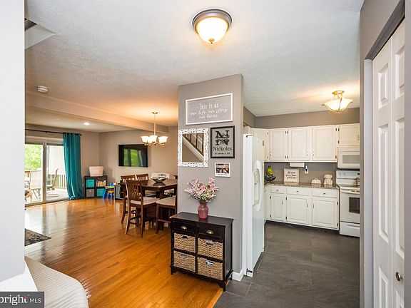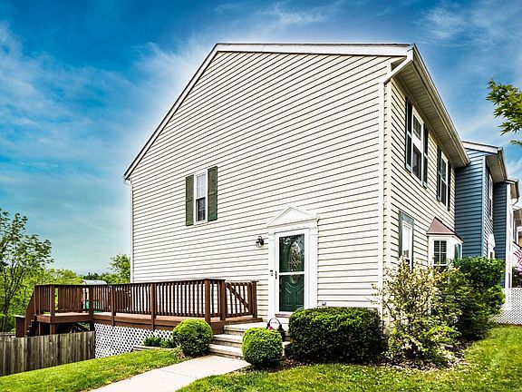This bright & beautifully updated 3BR/2.5BA END OF GROUP townhome located in the highly desirable Roberts Field neighborhood is a MUST SEE! Natural light pours in through large bay window. Eat-in kitchen boasts updated granite counters & ceramic tile flooring, pantry, tons of counter space, & pass-through window into open concept living/dining room, both featuring beautiful hardwood floors. New sliding doors lead from living room to large deck offering stunning, wooded views. A full bath, 3 bedrooms with generously sized closets & gorgeous, recently installed high-end laminate flooring completes the upper level. Finished lower level features family room with plush carpet, pellet stove, full bath, & abundant storage. New French doors lead to huge private, fenced in yard with 2 sheds & lots of room for fun & relaxation! Other recent updates include water heater, washer/dryer, & paint throughout. Community playground, tennis courts & other amenities are easily accessible. Peaceful, quiet setting but near all conveniences. Shows great & completely move in ready!