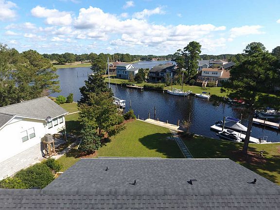 Another beautifully restored better than new home in Fairfield Harbour. This Waterfront home has new shingles, siding, concrete driveway, gas logs, mantle, stainless appliances, lighting, shelving, flooring and paint. When you enter the living room from the foyer you see a pristine clean slate. LVP flooring flows well and is an easy clean. Eat in area in the back adjacent to the sliding glass doors that lead you to your deck and then onto the water. Off to your right you will enjoy the new kitchen. Soft close drawers, all new appliances, countertops and cabinets. Then onto the sunroom where you will want to spend a lot of time. Back down the hall you can find the laundry/mud room with cabinets and a sink. Your master bedroom has a walk in closet that goes on and on. Plus 2 double door closets. Brightly lit master bath with 2 sinks and great cabinetry underneath. Walk in shower and a tub. Upstairs you will find LOTS of storage. 2 bedrooms with water views, a full bath and a FROG with eave storage. Hurricane Florence did visit this home but she has been brought back beautifully.