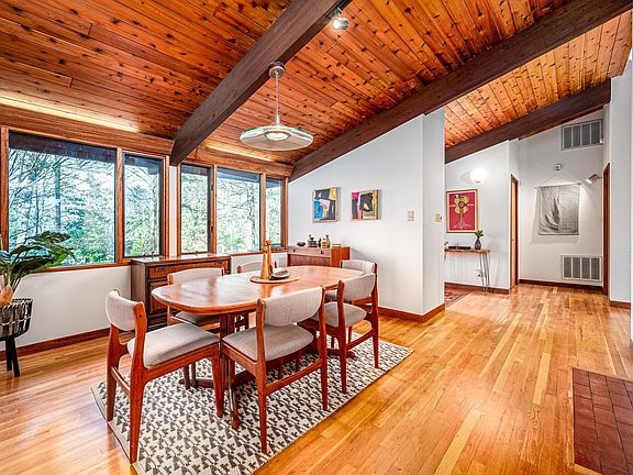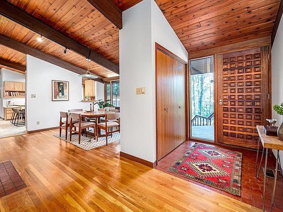 902 Kings Mill is the gorgeous one-level Deck House in the woods you’ve been waiting for, in James Taylor's old neighborhood! This NC MODERNIST 4 bedroom home features a 2 car carport w/extra storage & full suite w/ kitchen, full bathroom, & living space! Clerestory windows, mahogany woodwork, solid core doors, and fabulous cedar-ceilinged screened outdoor porch. Natural stone, decks, meandering paths, and a water feature bring zen right on home. 1 mile from UNC Medical and .5 from Botanical Trails and Morgan Creek, the best of NC is at your fingertips. Home meticulously cared for - only 1 owner!