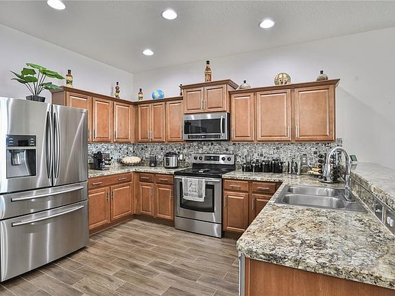 BACK ON THE MARKET!! Spacious and desirable floor-plan with high 9' ceilings and upgraded wood-like tile throughout the entire home. When you first walk in you find a Living room that offers plenty of natural light making it feel warm and cozy. Kitchen was upgraded with a beautiful back-splash and stainless steel appliances. Spacious Family/Dinning Room combo over looks at covered patio and fenced in backyard. Like-new storage shed stays, as well as all-around camera system. This is a corner unit lot with a park and playground right across. Medulla Elementary is 0.3 miles away, no need to even go on main road. This home has everything you need and will not last long at this price. Schedule a showing today!