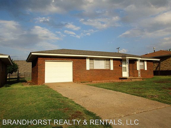 Move In Ready! Small pet possible. - This 3 bedroom 1 bath home is located on a quiet residential street with a large fenced backyard and storage building. Recent hand scraped wood floor covering in living area and bedrooms with vinyl tile in kitchen, dining area, laundry room and bath. . The kitchen has a new dishwasher, disposal, vent hood and faucet. The bathroom has a new tub and surround, updated sink, faucet and light fixture. Updated ceiling fans and blinds throughout. The attached single car garage will protect your vehicle from unpredictable Oklahoma weather! Tenants are responsible for all utilities and maintaining the yard during their lease. Small dogs are allowed at this property with a $300 pet deposit ($100 of that pet deposit refundable). No Cats Allowed (RLNE4194622)