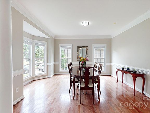 In popular Hunter Oaks, this gorgeous house boasts open floor plan and prime location: close to tennis courts and swimming pool, a few minutes to Blakeney and 485. Spacious kitchen with a large 9-foot island. Bright breakfast area leads to the nicely landscaped backyard with paver patio and firepit, ideal for outdoor gatherings & relaxation. The great room is filled with large windows and gas fireplace for a cozy movie night. Main floor features a guest suite with a full bath for visitors. Upstairs, the primary suite features a spacious layout, a walk-in closet, a luxurious en-suite bathroom with dual sinks, a jetted tub, and a separate shower. The large bonus room on 2nd floor offers endless possibilities. Fully upgraded with Nest Smart Home Products. Zoned for top-notch Marvin schools.