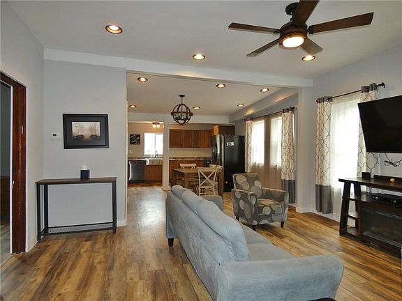 FOUR bedroom, Charming and updated two story awaits you! Walking distance to the square, parks and Elementary school! This home has been updated down to the studs! Updates include: new siding-windows-roof-drywall-kitchen-flooring-electrical-light fixtures and more! Two bedrooms, open concept kitchen and living, pantry, laundry and bath on the main level. Upstairs features two additional bedrooms, large closets and a bonus room! Relax on the cozy porch in the front or in the spacious fenced backyard! Call today for your private showing and be sure to ask your agent for the complete list of updates! RESERVED ITEMS: Washer/Dryer, Window Treatments