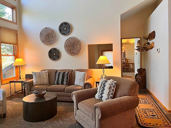 Amazing setting nestled amongst the aspens and pines. Super clean and cozy! Fresh paint, new carpet and flooring. Brand new stainless kitchen appliances. New ceiling fan on its way! Immaculately kept and never rented by current owners. Although it could be a terrific rental! Gas log fireplace, stackable washer and dryer, FAU, spacious deck, private bedrooms, cathedral windows and vaulted ceilings.