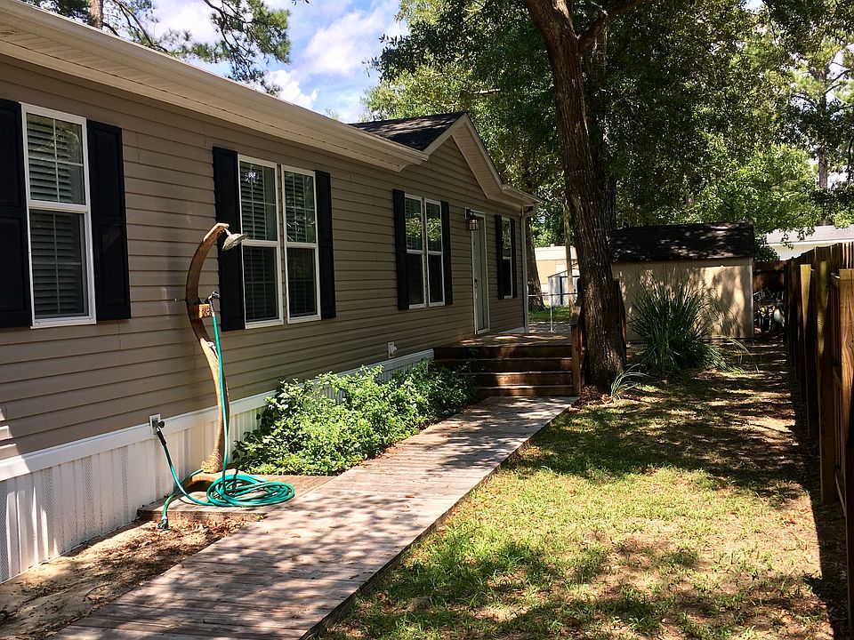 This stunning beauty is being offered furnished! The home and the land are owned together, no HOA fees. This home was completely updated in 2015. This gently used 2nd home is a great beach getaway for those wanting to be near all the action but yet in a tranquil family-oriented setting. The spacious kitchen offers plenty of cabinets for storage, counter space, a pantry, and stainless steel appliances with a breakfast nook. A separate Laundry Room equipped with a washer/dryer. The open concept living room/dining area is bright with beautiful natural light. The Master Bedroom is located just off the Living Room and is also spacious. The large master bath offers a double vanity, garden tub and separate shower. The two other bedrooms are a nice size with great closet space. The back screened porch is a great place to relax, drink your morning coffee and enjoy your family. There are also two storage buildings on the property for your golf cart, chairs and your beach gear with an outdoor shower. The property is completely fenced for privacy and your pets. This beautiful home looks new and is clean as a whistle! Golf cart to shopping, dining or the beach! Don't let this one get away! Make your appointment today!