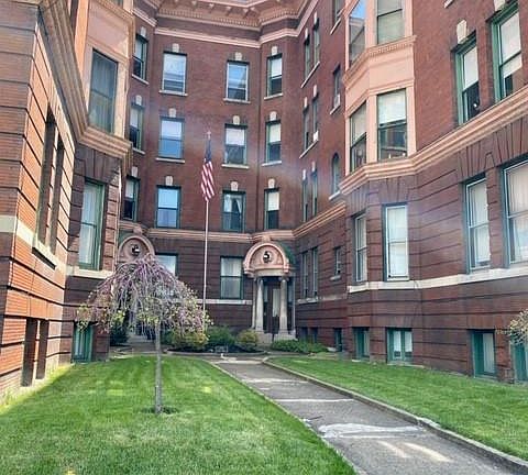 Historic Co-op unit with hardwood floors and 2,000+ square feet. Updated kitchen, on site laundry, replacement windows and doors, Bathfitters bath. Pets considered. HOA fee includes heat, water, sewer, garbage, property taxes, General Liability Policy and Boiler Insurance. Fenced side yard is shared community space. Parking is on the street, or pay to park in the Stogie lot. This is a CO-OP not a condo. Possession August 1st.