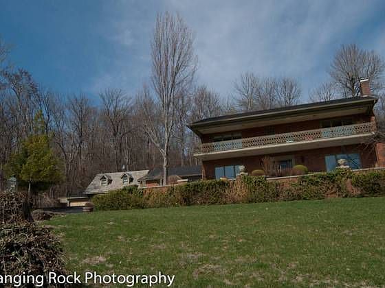 PRIVACY WITH BREATHTAKING VIEWS OF OHIO RIVER AND CITY OF MADISON! Quality craftsmanship and cherry, oak, ash hardwood floors throughout home. Large working/entertaining kitchen with all appliances, custom cherry cabinets & granite counter top. Library has cherry bookcases and Tiffany lamp. 5th BR (main floor) has half bath and could be used as exercise rm, etc. 2 gas and 1 wood-burning fireplace. Beautiful view from living, dining, family rm, sunroom, and master bedroom. 1-car attached garage plus 3-car detached garage/workshop with slate roof and upstairs bonus room. Both garages have propane furnaces, 220 electric, served by compressed air. Covered porches, patio, decks, professional landscaping.
